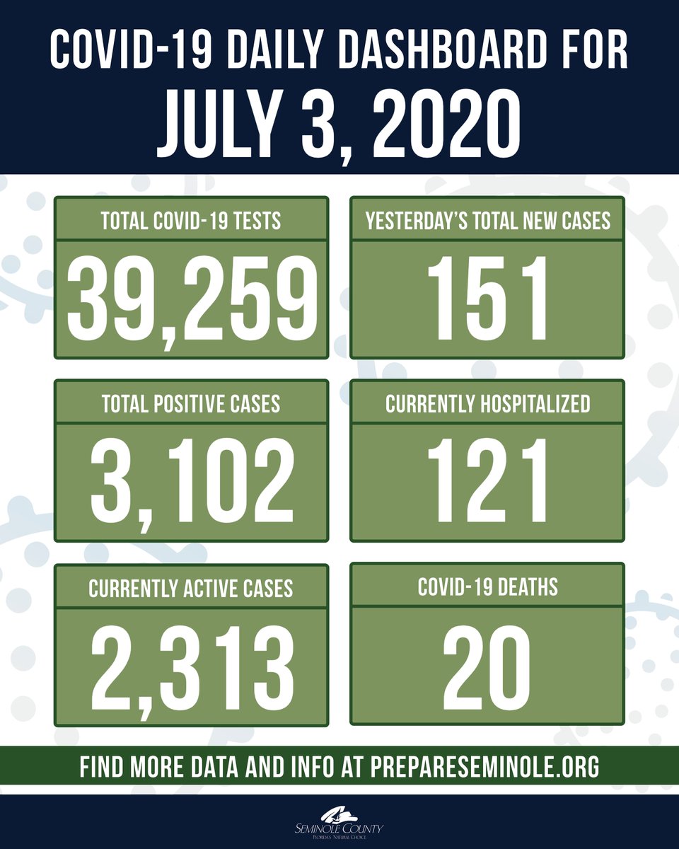 Seminole County Fl On Twitter July 3 Yesterday Seminole County Regretfully Confirmed Its 18th Covid 19 Death A 38 Year Old Woman The 19th And 20th Patients Were Both Reported Today Females Aged 84