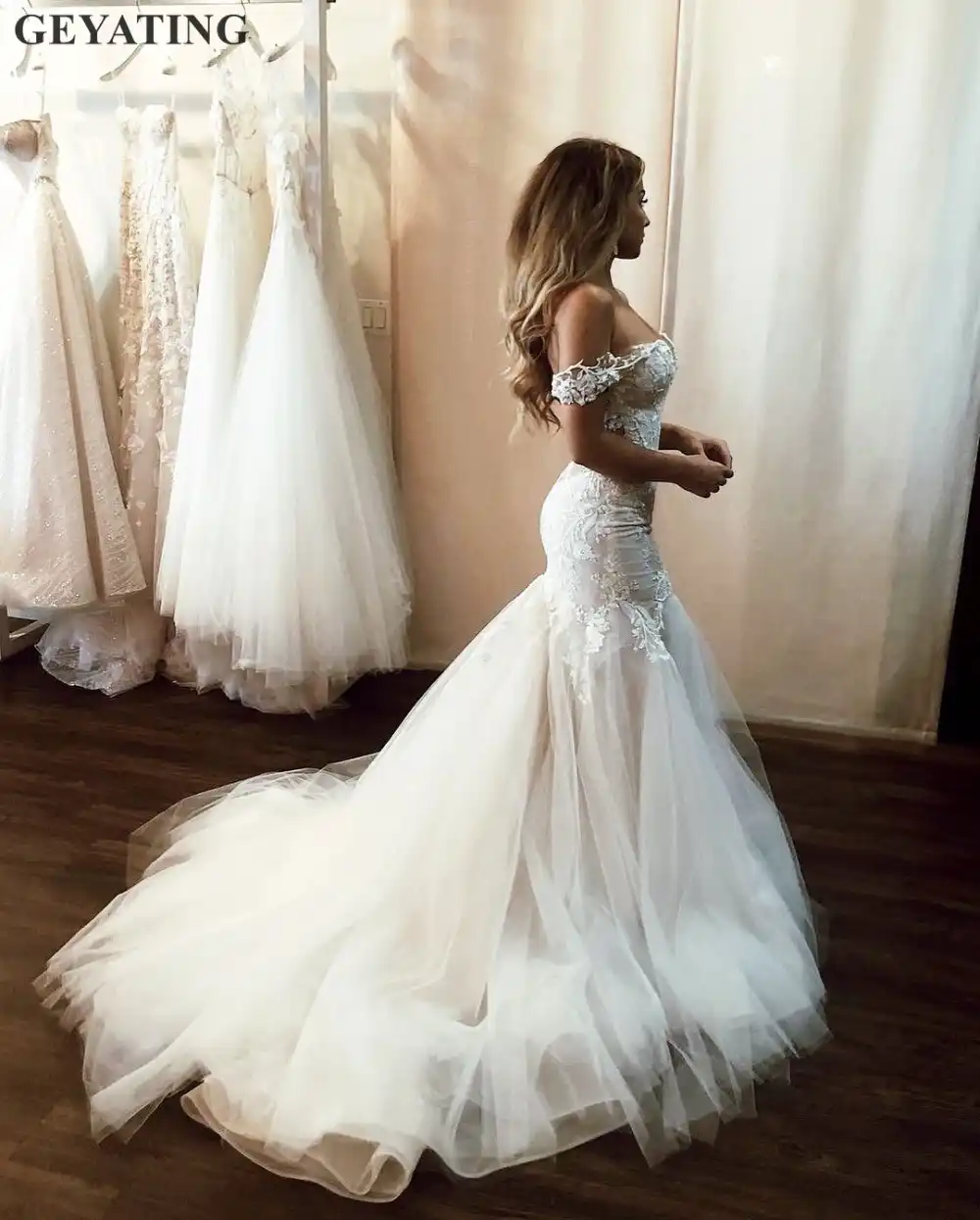 Off Shoulder Vintage Lace Mermaid Cheap Wedding Dresses Shore Sleeves Sposadresses