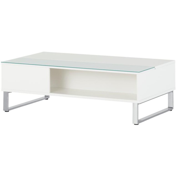 120 Cm Couchtisch Horiconta In Hochglanz Weiss Mit Glasplatte